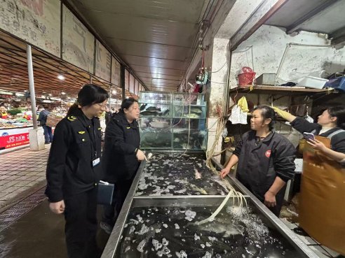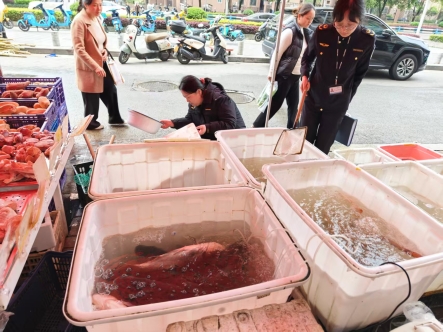 市场监管局对区内水产批发市场、集贸市场、生鲜超市等鱼类经营场所开展突击排查,重点对集中交易市场开办者和经营户进行督促提醒,全力守护群众“舌尖上的安全”。