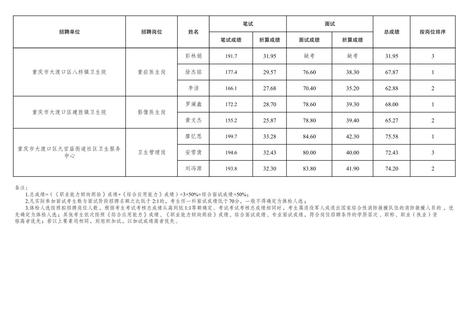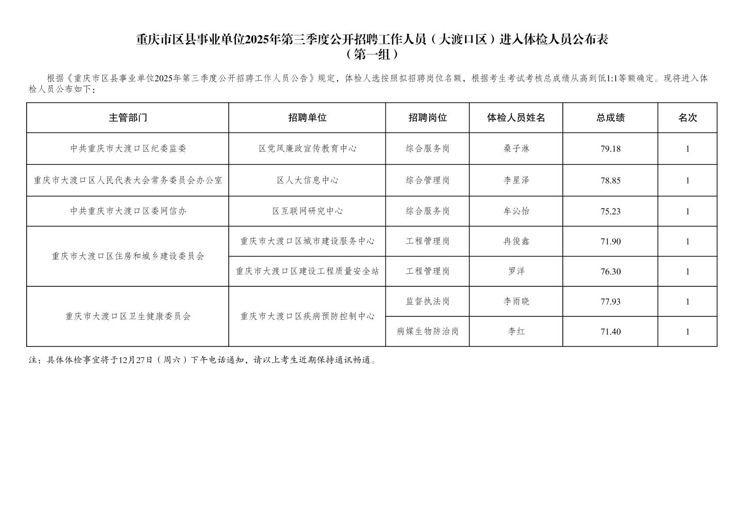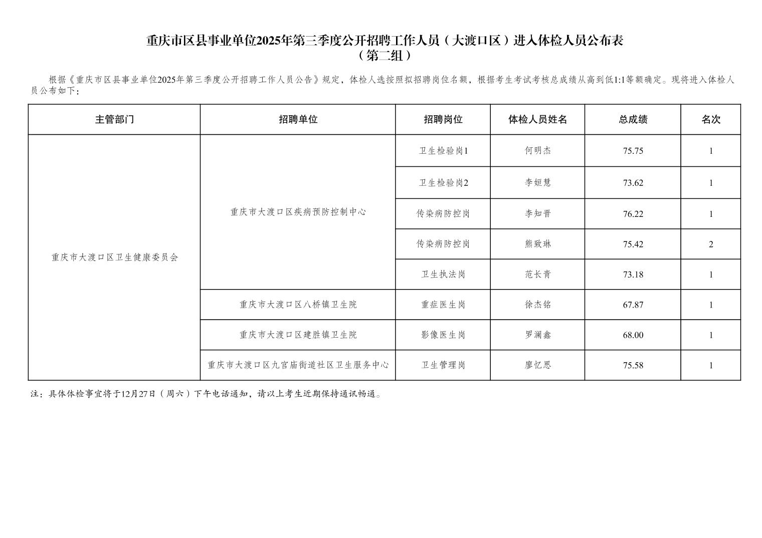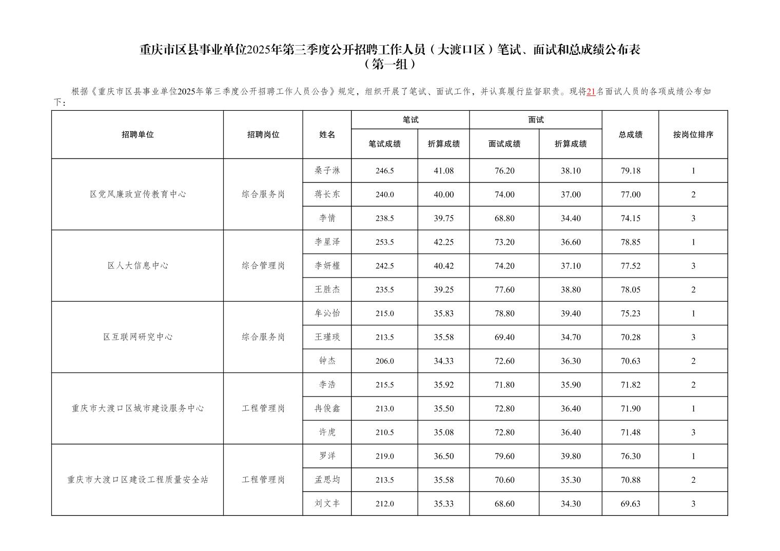 重庆市区县事业单位2025年第三季度公开招聘工作人员(Bet365 App下載 )笔试、面试和总成绩公布表