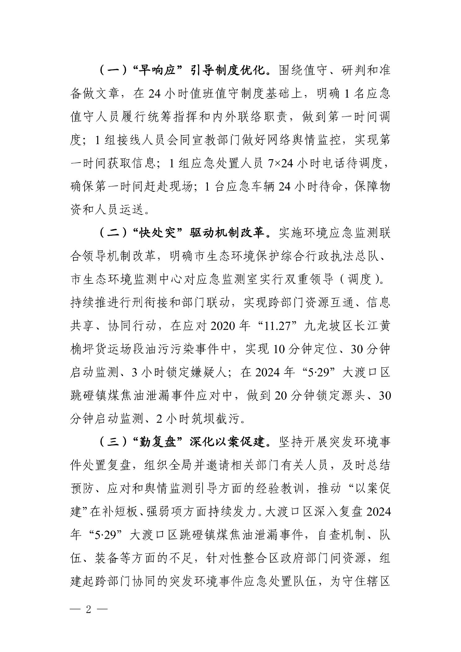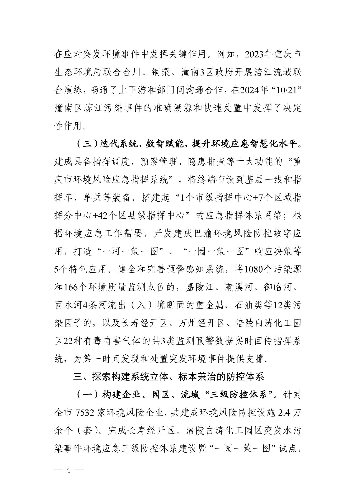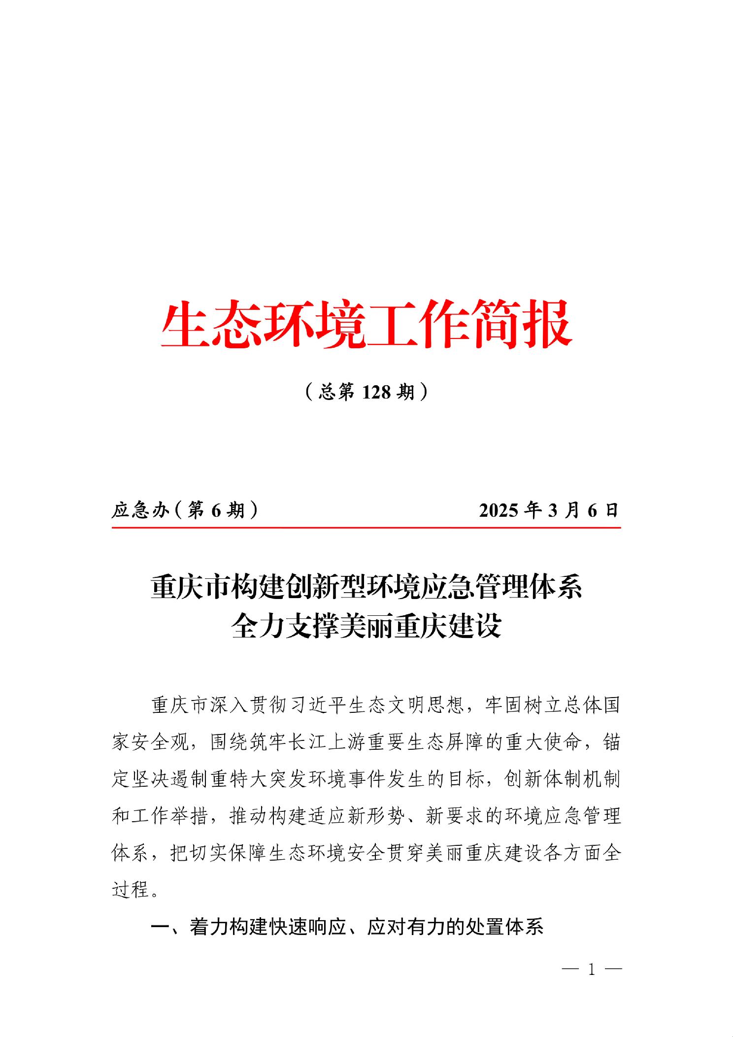 重庆市构建创新型环境应急管理体系 全力支撑美丽重庆建设