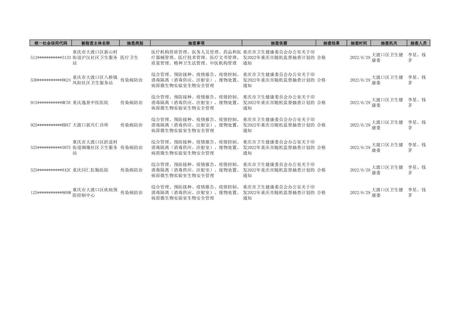 2022年第二季度Bet365 App下載 卫生健康“双随机、一公开”抽查结果公示表(二)