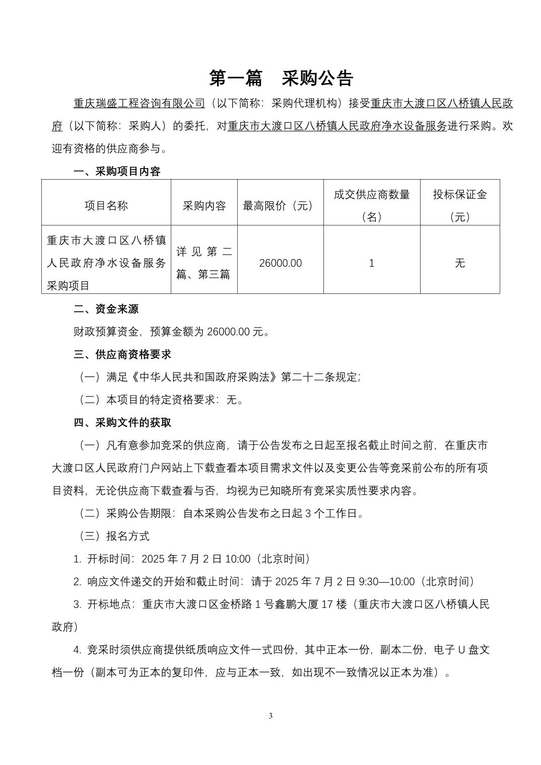 Bet365 App下載 八桥镇人民政府净水设备服务采购公告.docx