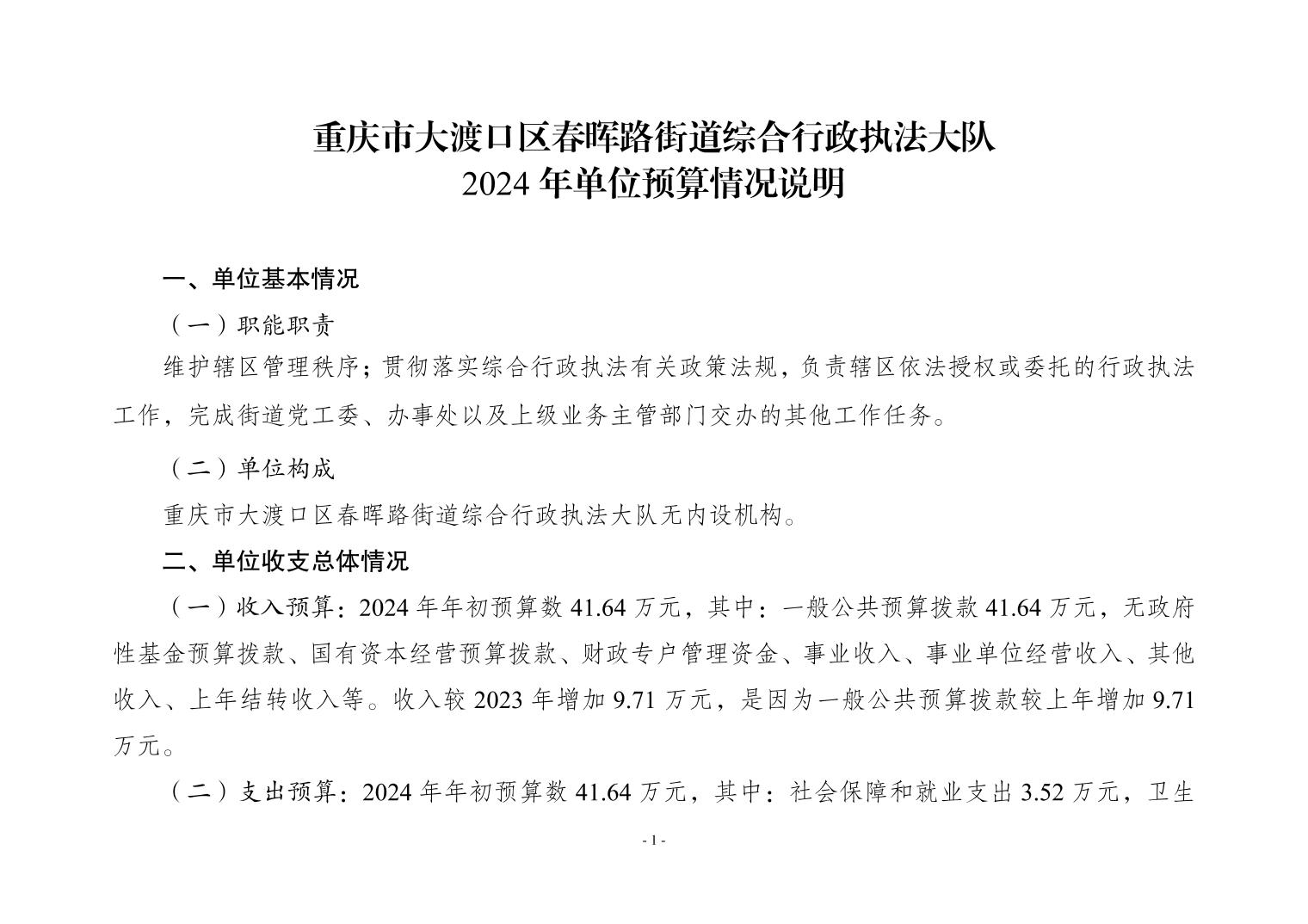 Bet365 App下載 春晖路街道综合行政执法大队2024年单位预算情况说明