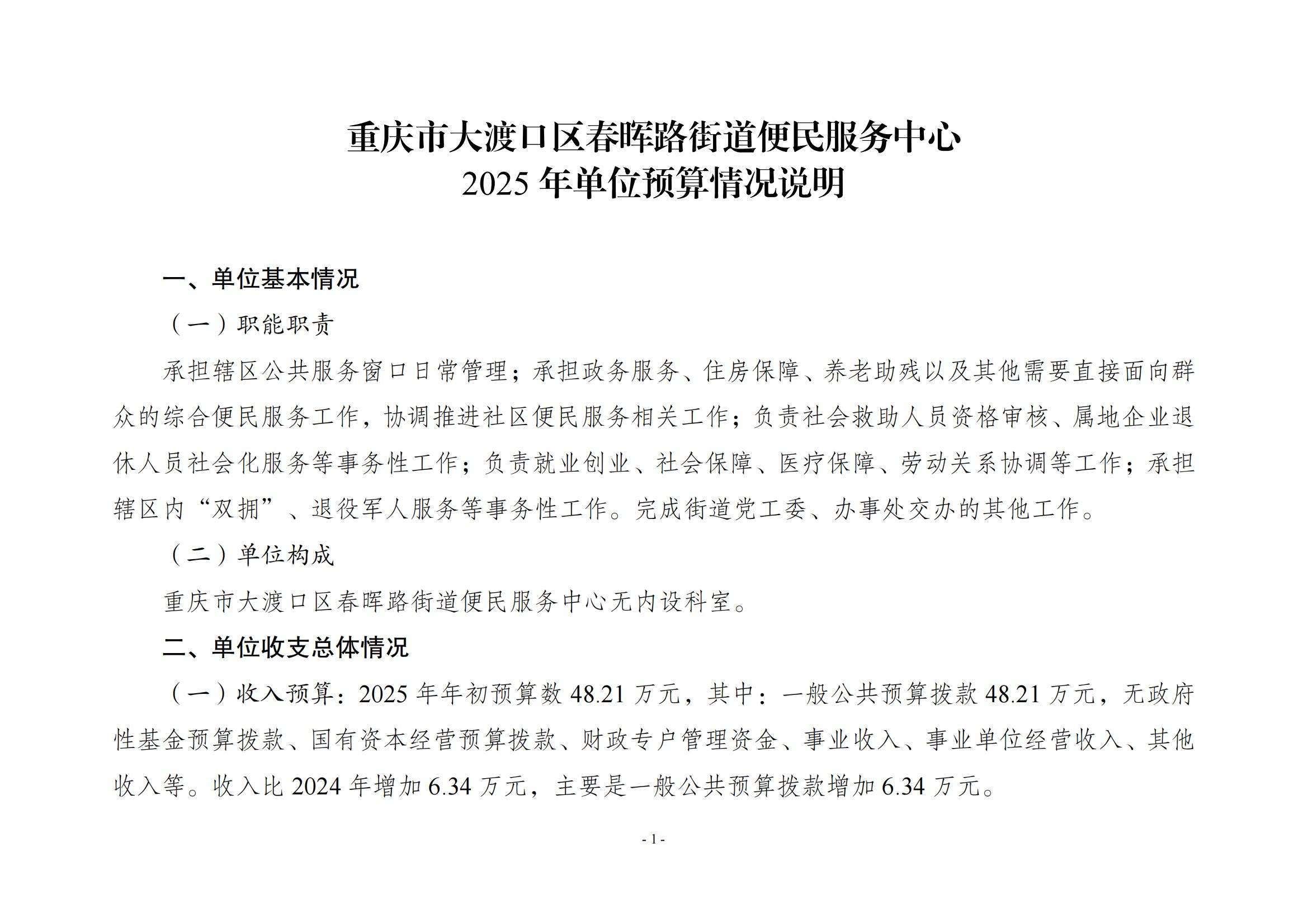 Bet365 App下載 春晖路街道便民服务中心 2025 年单位预算情况说明