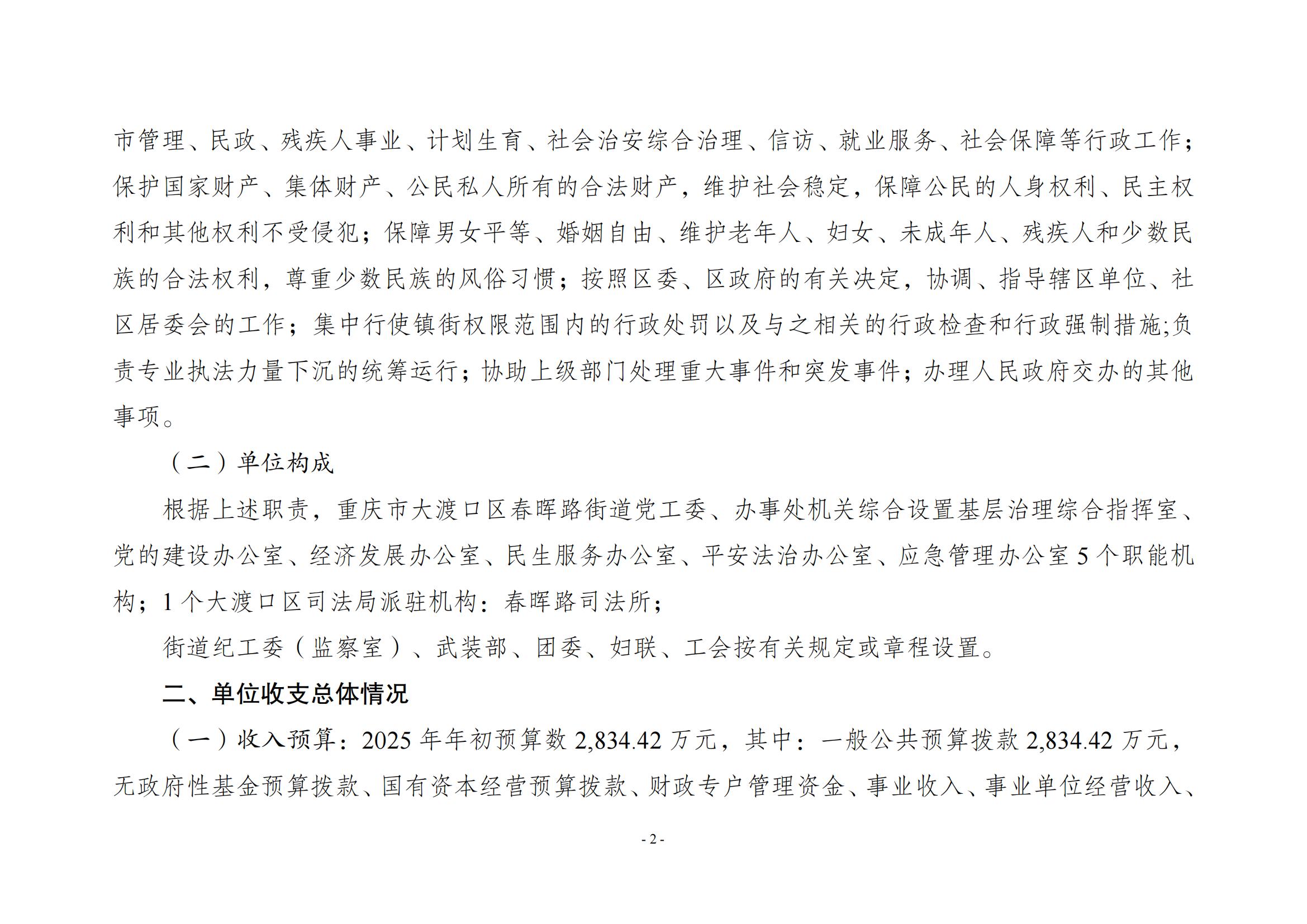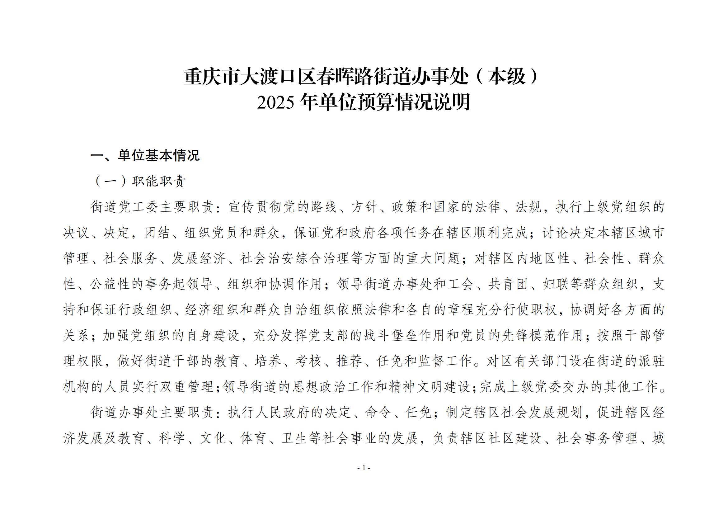 Bet365 App下載 春晖路街道办事处(本级) 2025 年单位预算情况说明