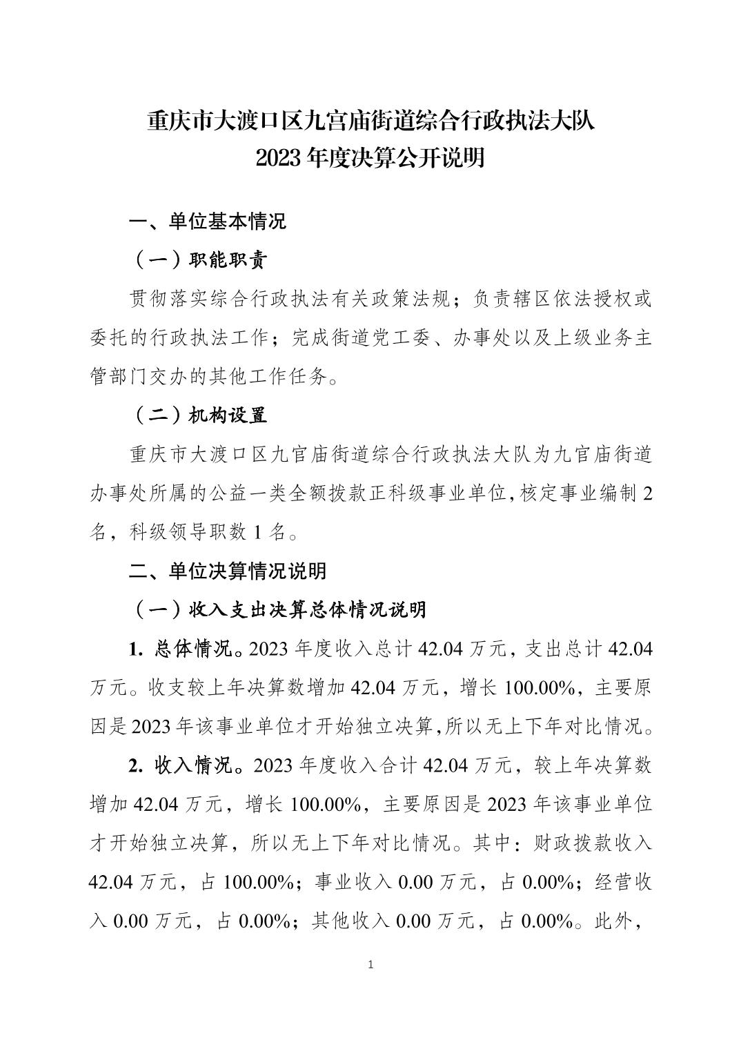 Bet365 App下載 九宫庙街道综合行政执法大队 2023 年度决算公开说明