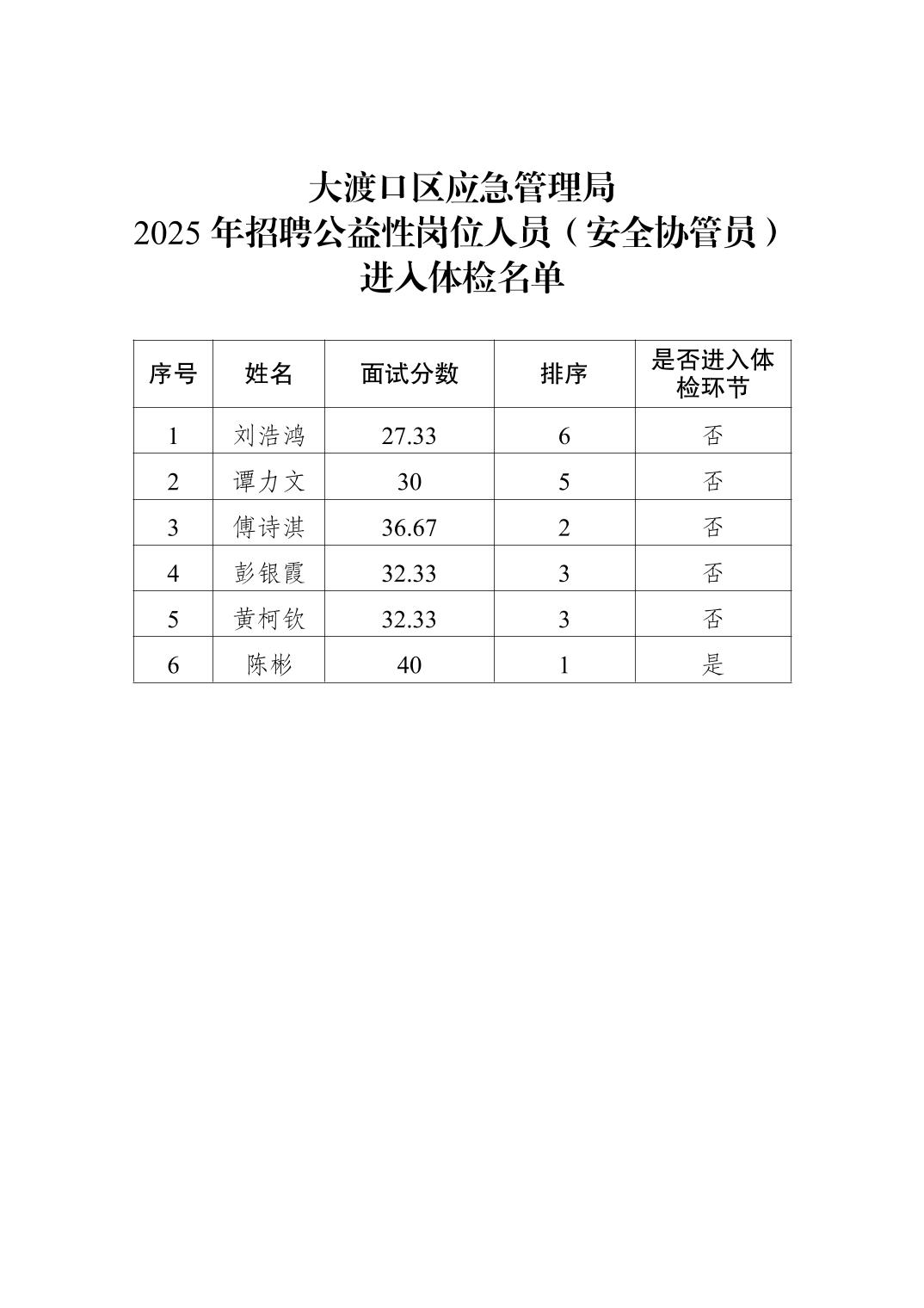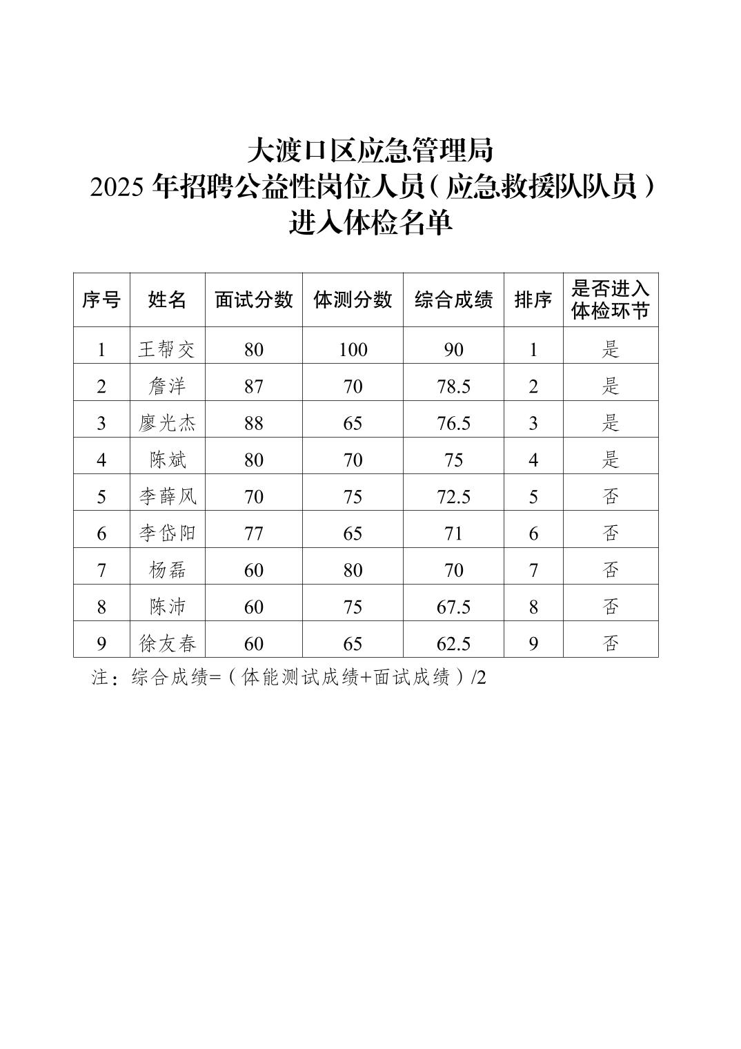 Bet365 App下載 应急管理局 2025年招聘公益性岗位人员(安全协管员) 进入体检名单