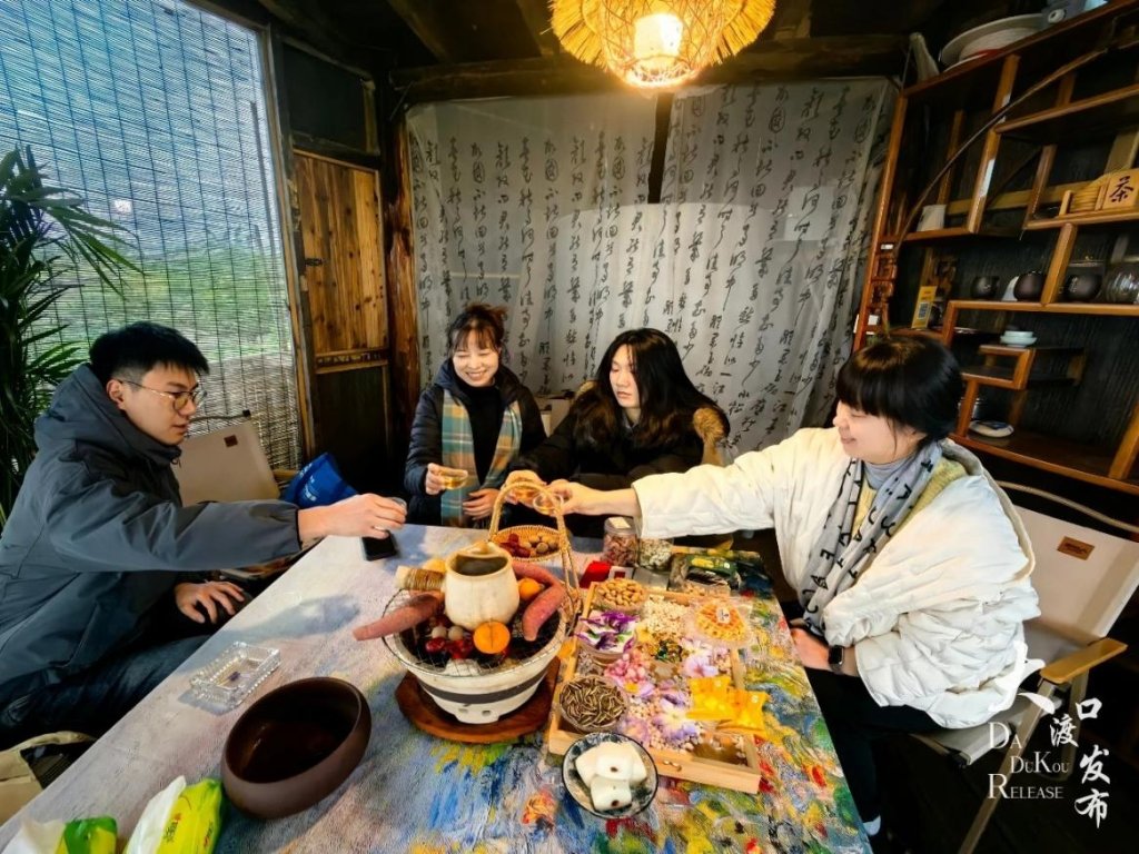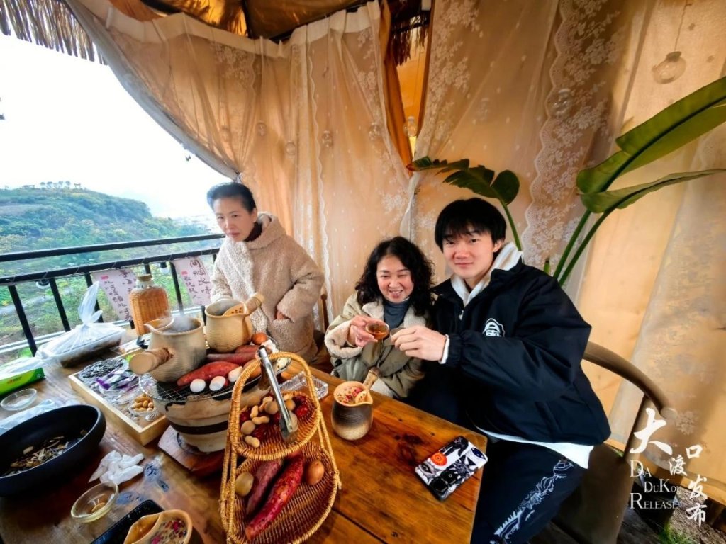 不远处的半山茶咖店内暖意融融,暖炉里炭火噼啪作响,烤红薯与桂圆的香甜气息漫溢全屋,人们捧一杯热茶,凭窗而坐,将金鳌山的烟雨朦胧与山水景致尽收眼底。“我是第一次来,专门从合川区过来耍,这里村美店靓,雨天躲进这半山小院喝茶赏景,太惬意了。”游客苏女士抿着热茶,眉眼间满是舒心。