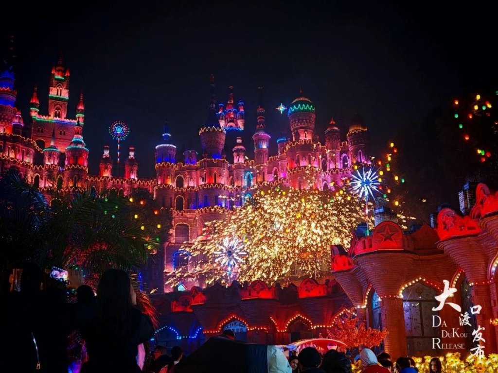 如果说金鳌山的惬意是慢下来的闲适,那华生园金色蛋糕梦幻王国的氛围则是热闹与浪漫交织。晚上6点,华生园金色蛋糕梦幻王国的灯光准时亮起,游客们满怀期待地入园游玩。