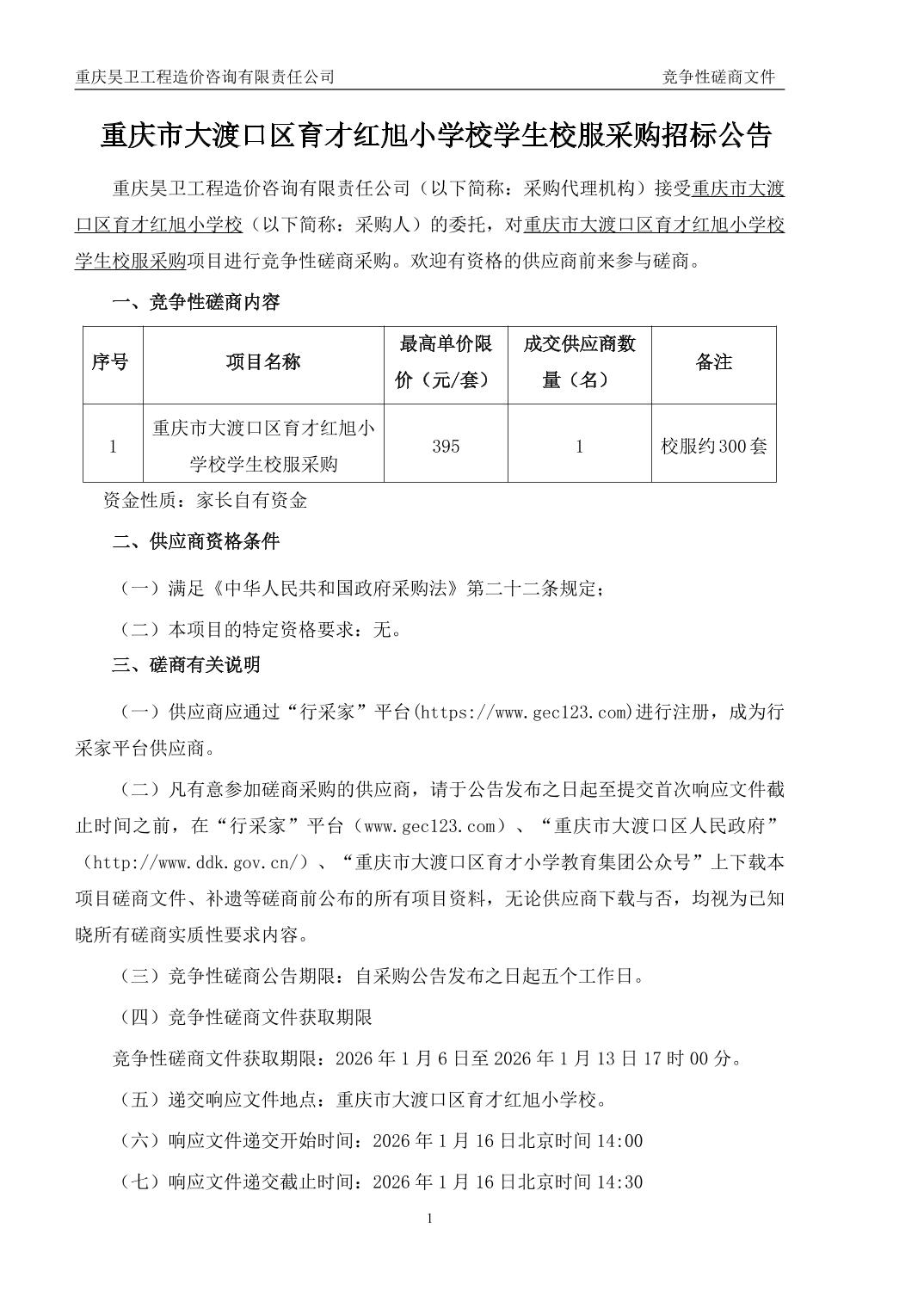 Bet365 App下載 育才红旭小学校学生校服采购招标公告