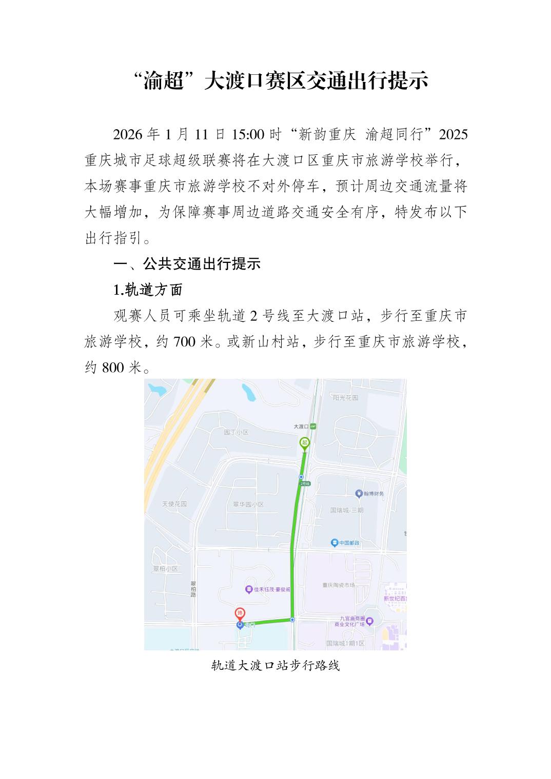 “渝超”大渡口赛区交通出行提示