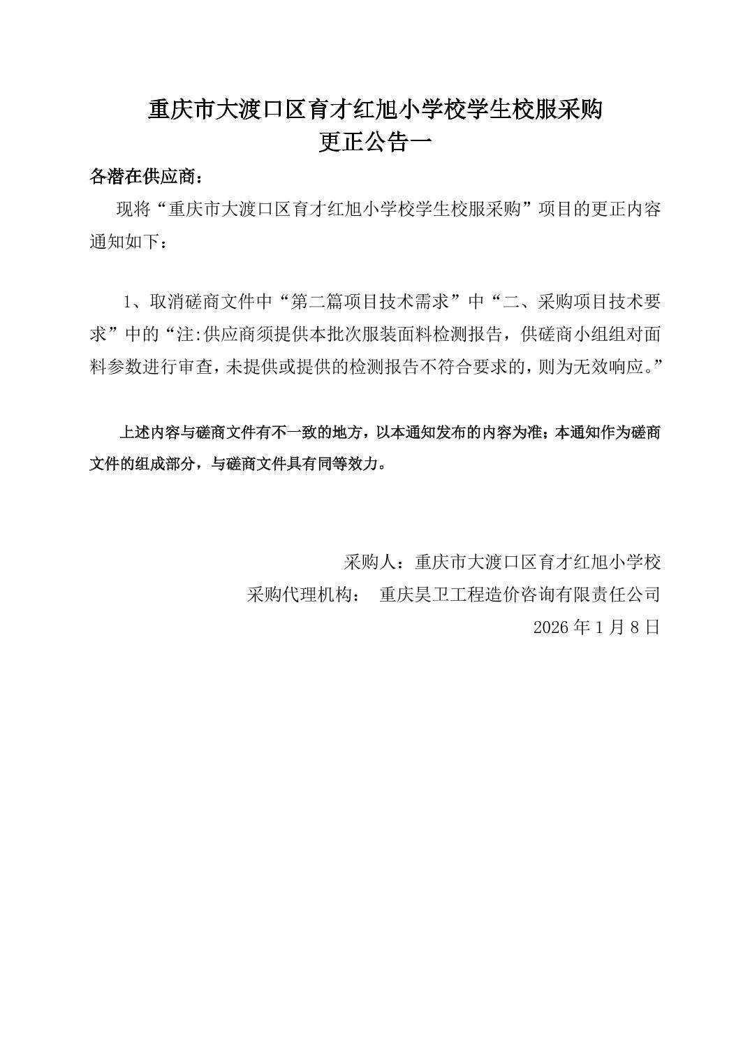 Bet365 App下載 育才红旭小学校学生校服采购更正公告一