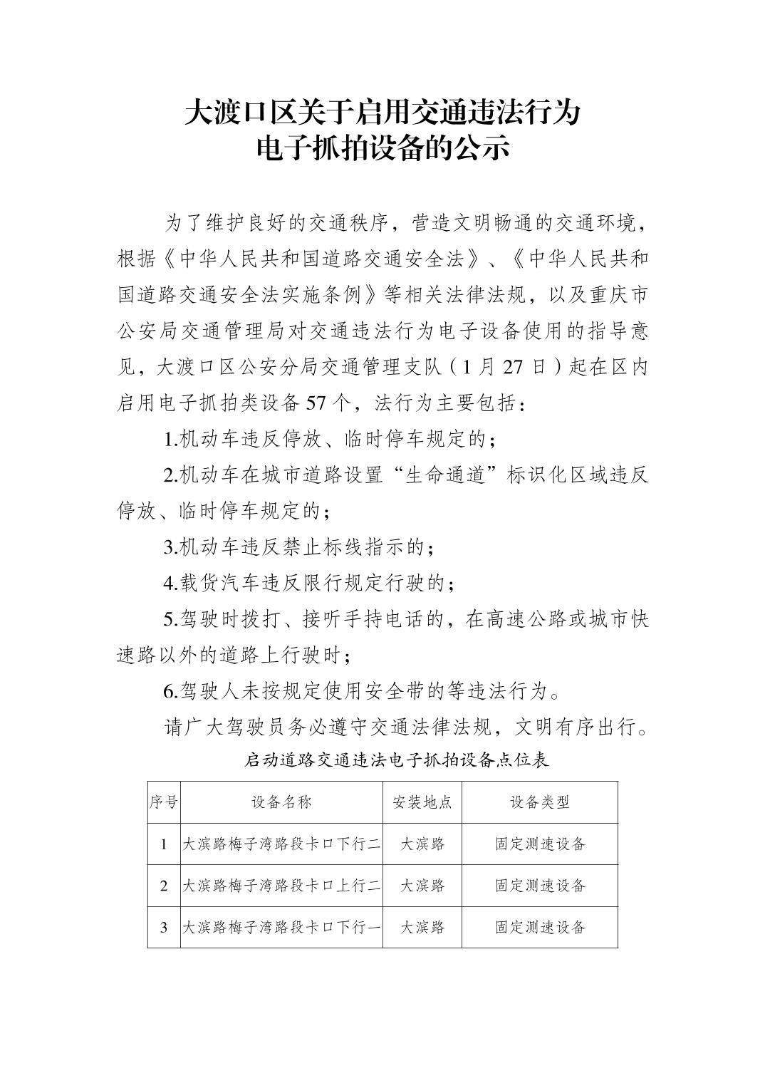 Bet365 App下載 关于启用交通违法行为电子抓拍设备的公示