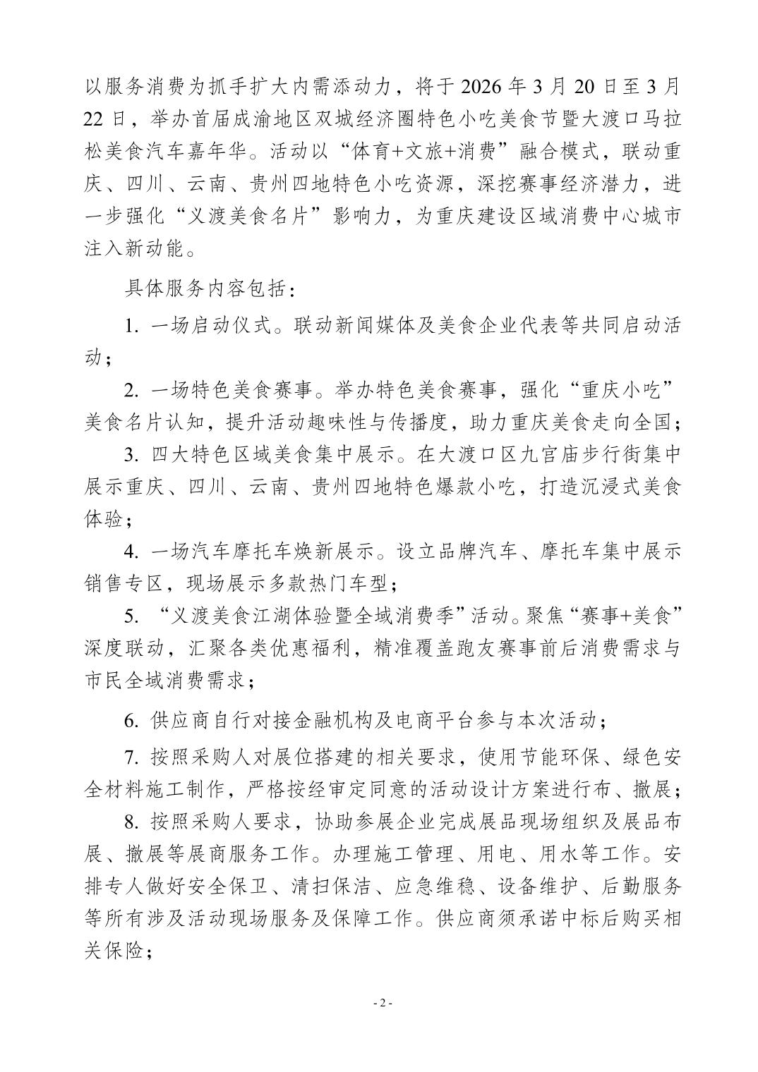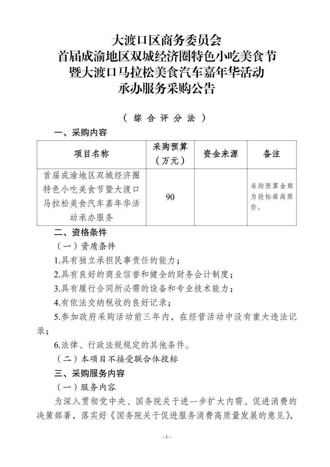 Bet365 App下載 商务委员会首届成渝地区双城经济圈特色小吃美食节暨大渡口马拉松美食汽车嘉年华活动承办服务采购公告.doc
