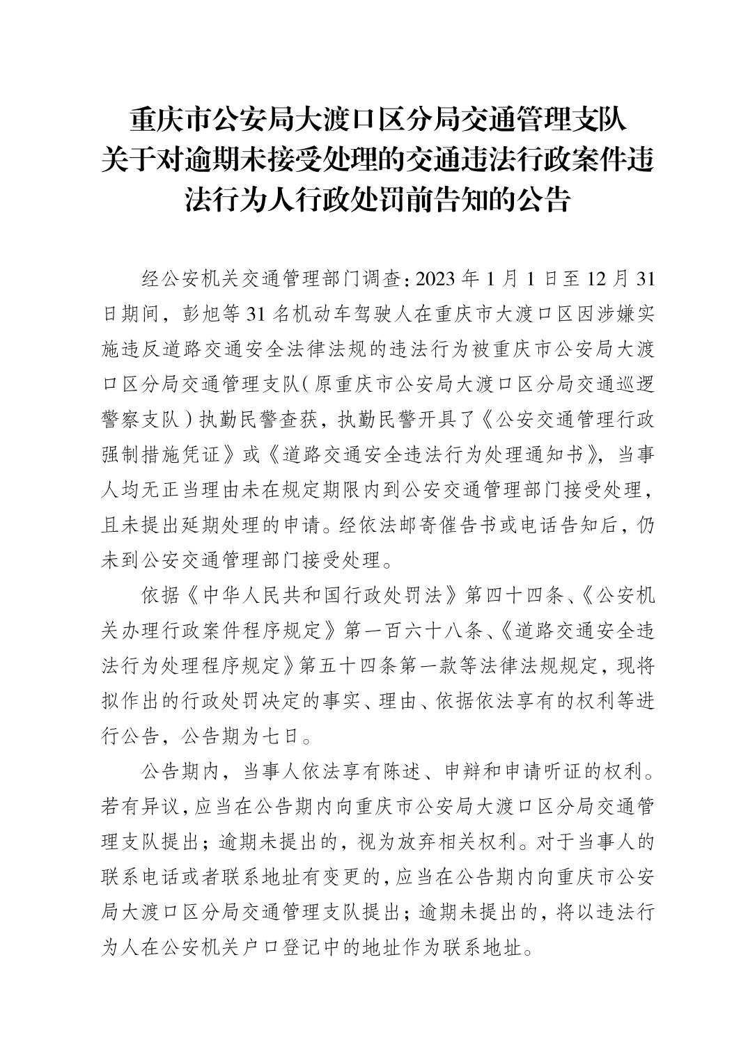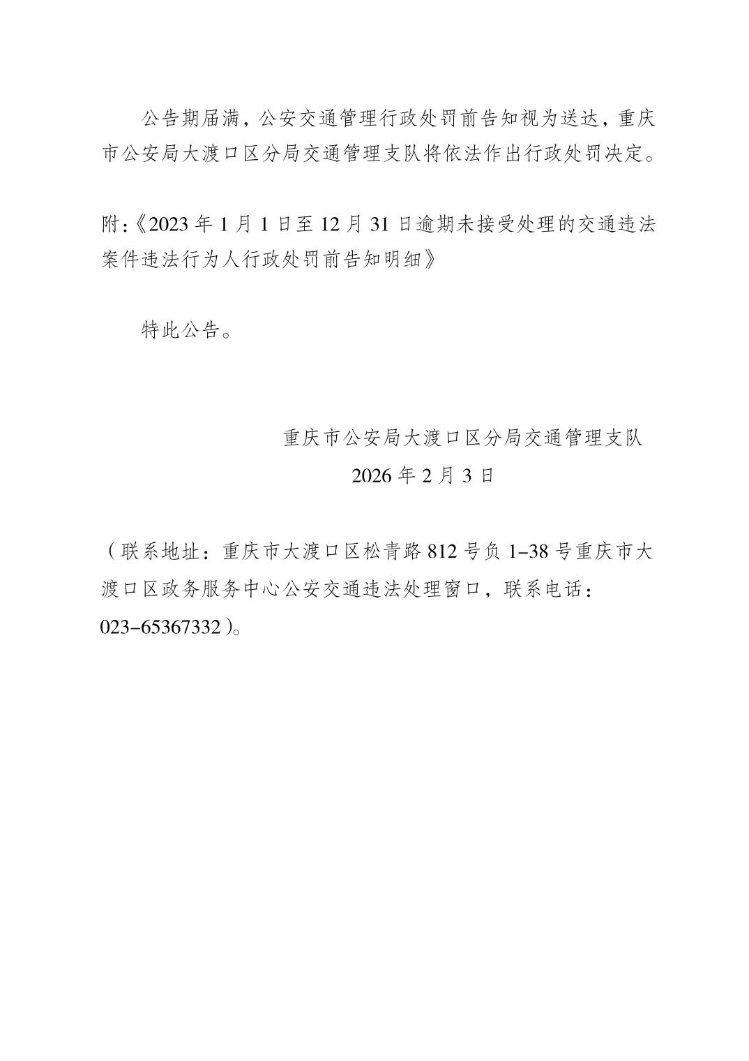 关于对逾期未接受处理的交通违法行政案件违法行为人行政处罚前告知的公告