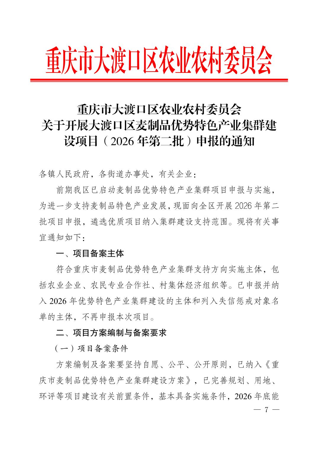 Bet365 App下載 农业农村委员会关于开展Bet365 App下載 麦制品优势特色产业集群建设项目(2026年第二批)申报的通知