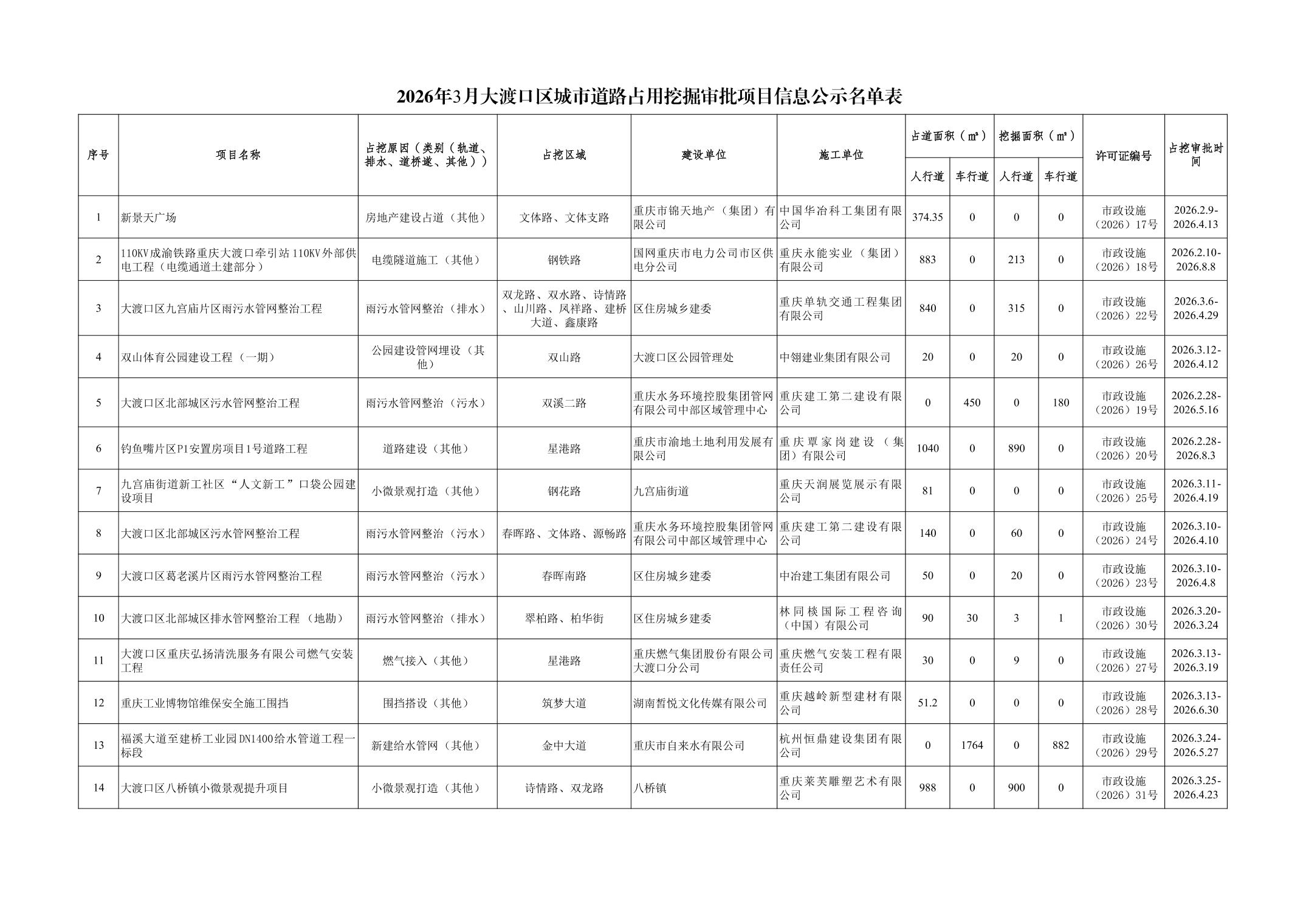 关于20263月城市道路占道挖掘审批项目信息的公示