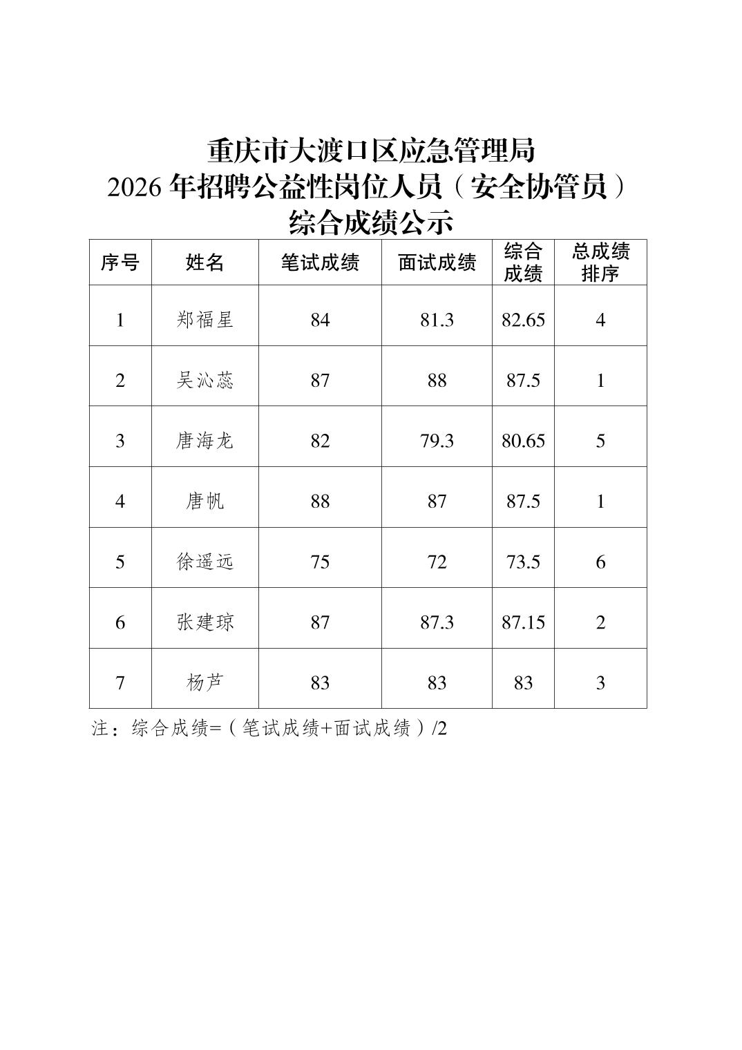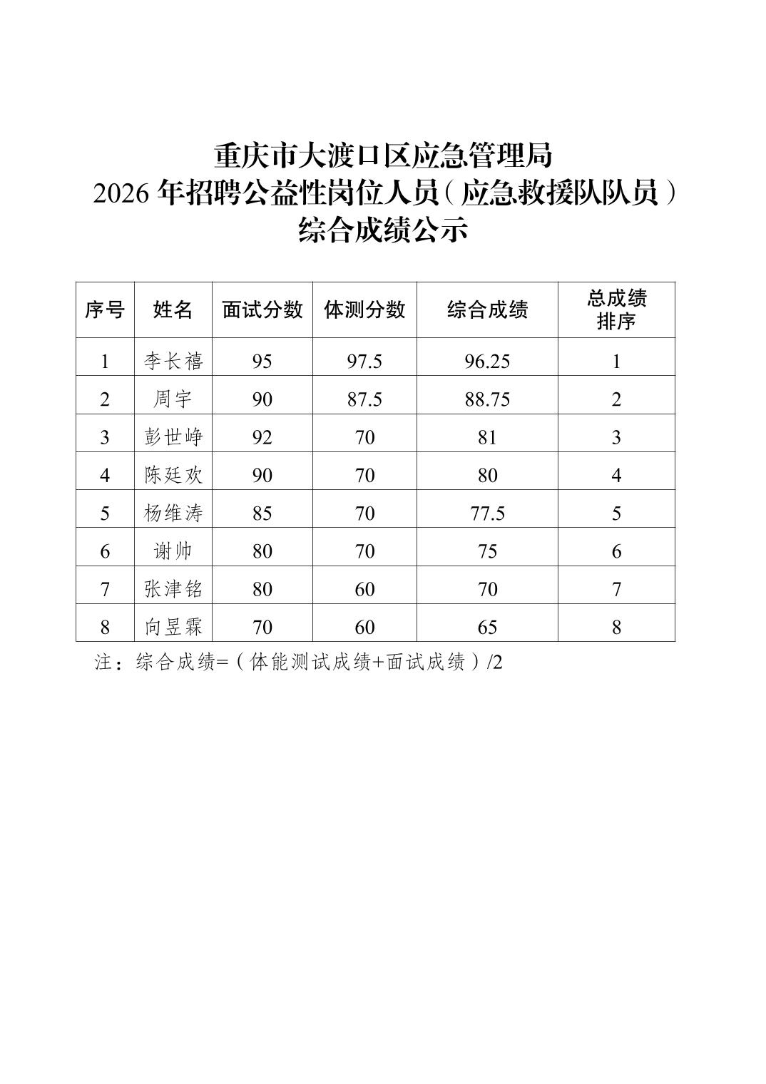 Bet365 App下載 应急管理局2026年招聘公益性岗位综合成绩公示